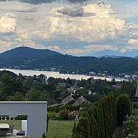 Wohn-Essraum als "Loft" gestaltet, integrierter Küchenbereich und zentraler Kachelofen. Zwei Terrassen mit Süd- und Ostausrichtung mit Seeblick und Bergpanorama (Pyramidenkogel und…