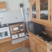 Im Erdgeschoß befindet sich eine große Wohnküche mit einem gemütlichen Holzherd.