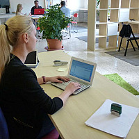 Es gibt große, offene Räume in denen Sie Arbeitsplätze für Büro- oder Handarbeiten inklusive kompletter Büroinfrastruktur flexibel mieten können.