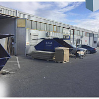 Diese ca. 540m² große und ca. 8m hohe Lagerhalle wurde aus Stahlbeton-Fertigteilstützen und Stahlbeton-Fertigteilwänden errichtet.