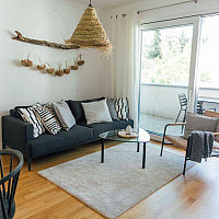 Neu eingerichtetes, stylisches & komfortables Designapartment für 2 Personen. Auf 54 qm wohnt man im Neubau, super zentral. Der 15 qm Balkon mit Esstisch und einer Hängematte laden zum Entspannen…