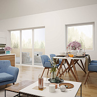 Offenes Wohnzimmer mit Küche