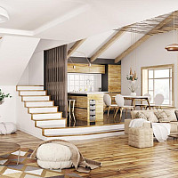 - großzügiges Wohnzimmer mit Kochnische und Zugang zum Balkon