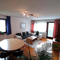 Die helle, großzügige 2-Zimmer-Wohnung mit 69 m2 liegt im Hochparterre eines privaten Wohnhauses, ist voll möbliert und ausgestattet für 2 Personen. Der Schreibtisch am Fenster bietet einen…
