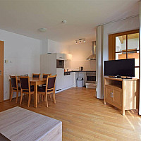 Wohnzimmer mit offener Küche