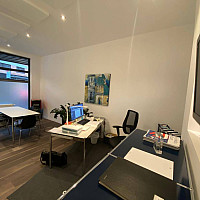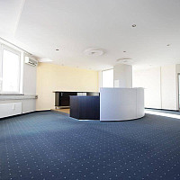Das gepflegte Kleinbüro befindet sich im 1. OG eines modernen Büro- und Geschäftshauses in Himmelreich, nahe der Autobahnabfahrt Flughafen.