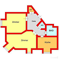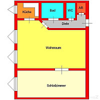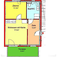 Sie besteht aus Diele, Wohnraum mit Küche,…