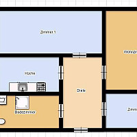 Raumaufteilung: Vorraum, Wohnküche, Schlafzimmer, Badezimmer und WC getrennt.