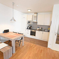 Ausstattung: Die Wohnung besteht aus einem großen Raum, in dem in der Mitte die Küche und rechts und links die Nasszellenbereiche (Dusche, WC und Bad) angesiedelt sind, so dass sich 1 Vorraum, 1…