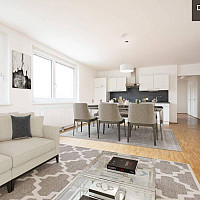 Die Wohnung liegt im 3 OG und ist in den Innenhof ausgerichtet. Vom Vorraum gelangt man in die offene Wohn-Essküche mit Zugang auf die schöne Terrasse. Durch die bodentiefe Verglasung wirkt der Raum…