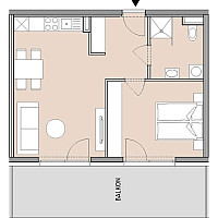 Die Wohnung mit der Nummer 205 im zweiten Stock besteht aus einem Wohn- und Esszimmer mit offener Küche, zwei Zimmern, einem Flur, zwei Badezimmern und einem Abstellraum (3,00 m²). Das Gebäude…