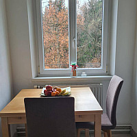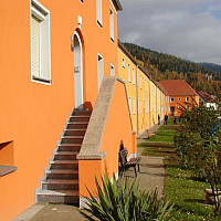 Die Wohnung befindet sich im Erdgeschoß eines Hauses mit fünf Wohneinheiten. Das Haus liegt etwa 50 m über Stadtniveau am Südhang des Reinerkogels. Sie ist ebenerdig, barrierefrei vom Hof…