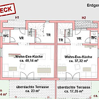 • 2 Schlafzimmer, großer Wohn-/Essbereich mit Küche (inkl E-Geräten), Abstellraum und ca. 80 m² Terrasse