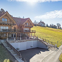 Unweit von Graz, an der Sausaler Weinstraße, ist dieses exklusive Blockhaus-Biochalet gelegen.