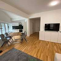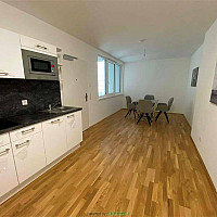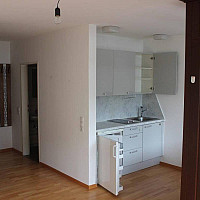 Diese Garconniere hat eine eigene Loggia, Badewanne und einen möblierten Abstellraum. Die Kochnische ist ideal für einen Single-Haushalt.