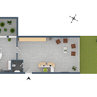 im Erdgeschoss mit ca. 130m² Fläche, Zugang zum Innenhof mit Terrasse