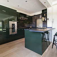 Neuwertige, zentral begehbare Wohnung im Obergeschoß des Chalets. Großzügige Küche, Wohn-Essbereich, zwei Schlafzimmer mit Bad en-Suite und einer Gästetoilette.