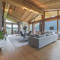 Bei diesem Chalet befinden sich im Erdgeschoss zwei Schlafzimmer mit je…