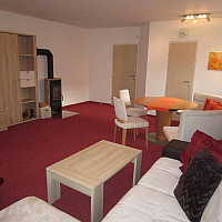 Diese 3-Zimmerwohnung ist komplett möbliert. Die Einrichtung im Wohn- bzw. Esszimmer besteht aus einem weißen Sofa, einem gemütlichen Essplatz…