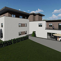 Wohnung im ersten OG eines Neubaus mit gesamt 4 Wohnungen am Ortsrand von Mariastein zu vermieten, moderner Grundriss, großer Balkon, Tiefgarage, ruhige Lage, gut erreichbar
