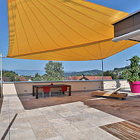 Vor etwa sieben Jahren fand der jetzige Eigentümer diese echte Penthouse-Wohnung mit der riesigen Dachterrasse in Sulz und dachte sich – ja, das ist genau das Richtige, nur fehlen noch zwei Zimmer…