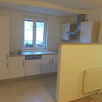 Gut angelegte Altbauwohnung mit möblierter Küche.