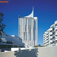 Das architektonisch beeindruckende Gebäude umfasst insgesamt 32 Geschoße und zwei Garagengeschoße. In diesem wienweit bekannten, modernen Hochhaus stehen auch Büros zur Verfügung.